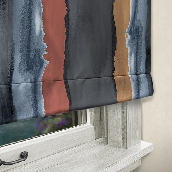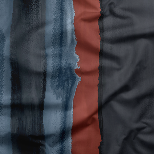 Beautiful designer striped fabric by the yard, perfect for large and small DIY and design projects, including pillows, table linens, and bedding. This cotton linen blend makes a great upholstery fabric, too. This watercolor pattern mixes dark gray, blue, and red and is a softer version of a stripe. This pattern was inspired by a misty cloud line seen from above.