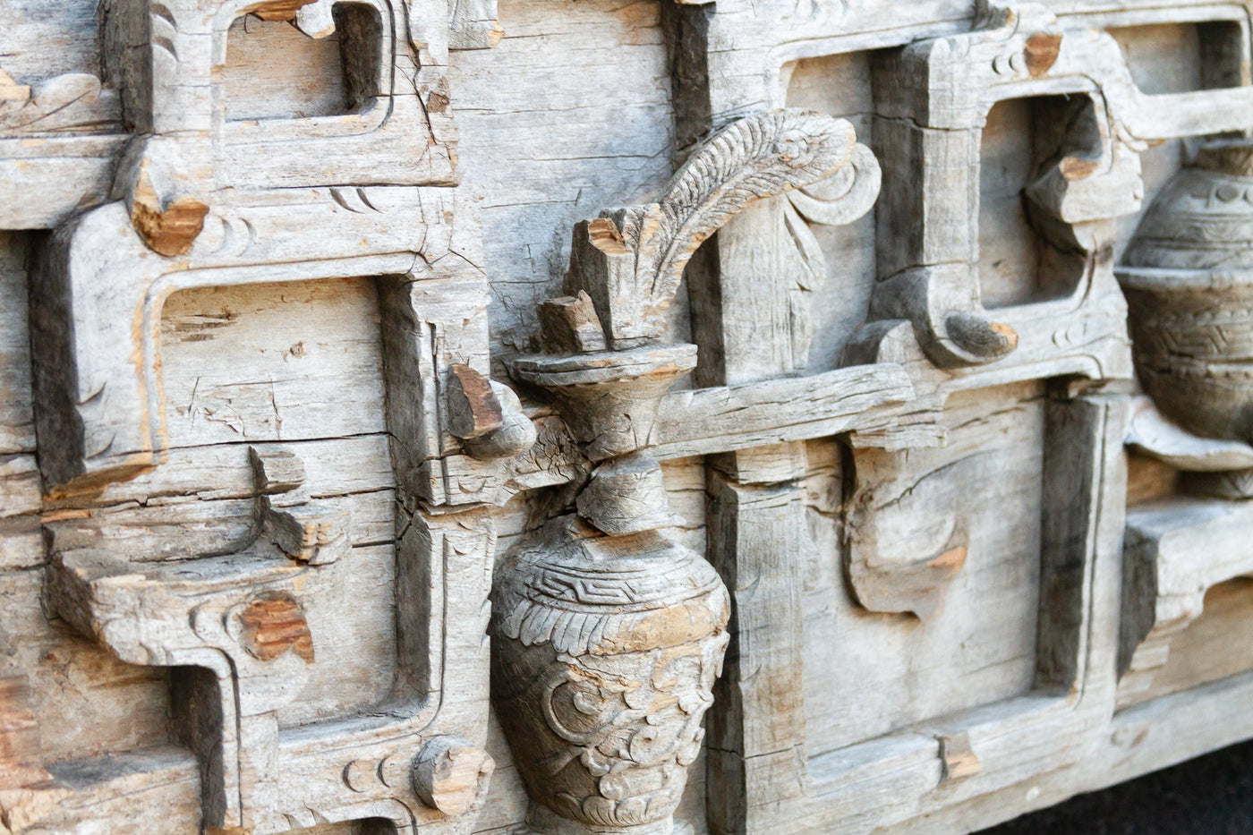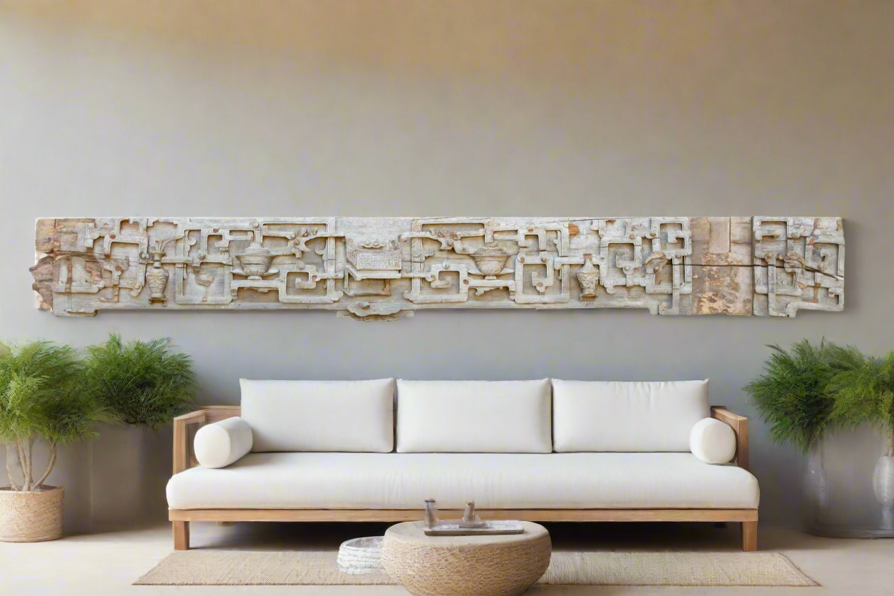 Hang this panel above your doorway or on a wall as a distinctive architectural element, or create a unique shelf with this beautiful carving as the main feature. Despite some expected loss of carving and chips due to its age, this panel remains a remarkable piece of art, ready to add a touch of history and cultural richness to your home.