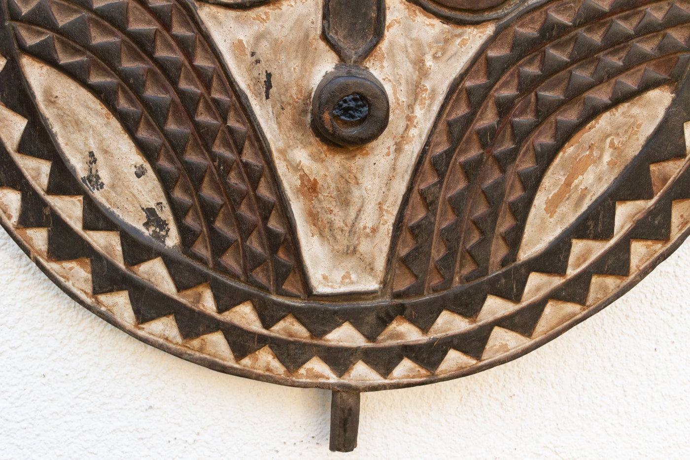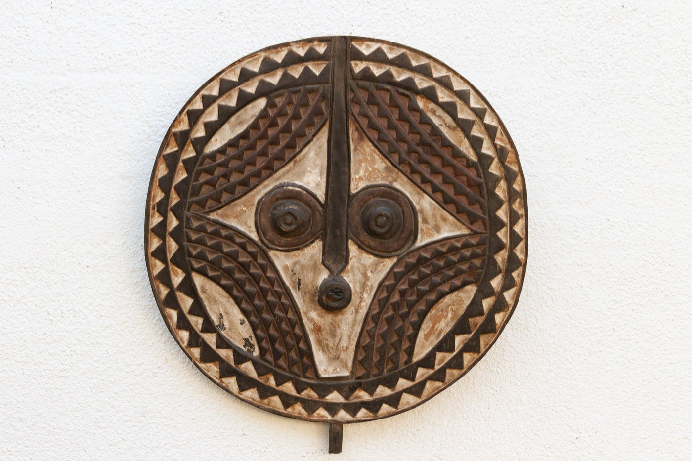 Originally used in sacred ceremonies as a protective talisman, this mask is a powerful symbol of spiritual power and community protection.
