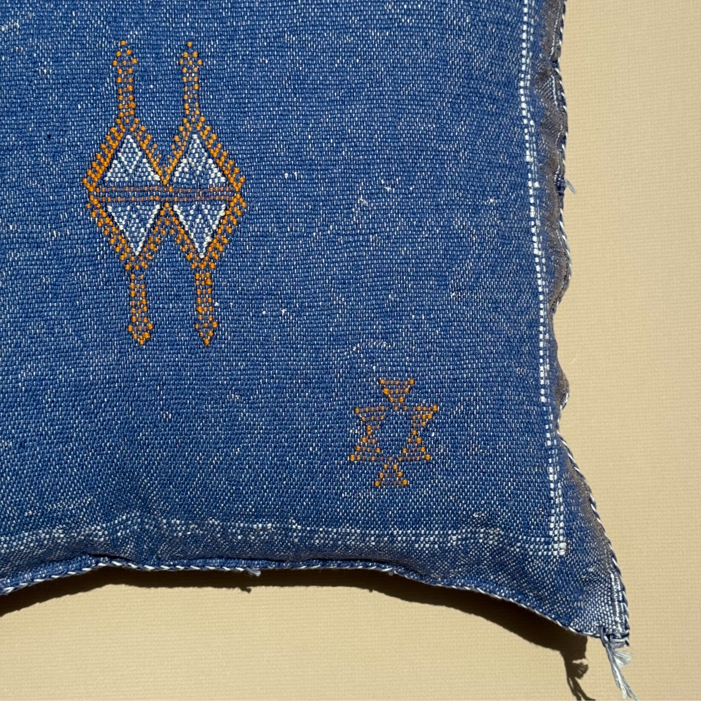 Blue Sabra Cactus Silk Kilim Pillow Cover | Handwoven Moroccan Home Decor
