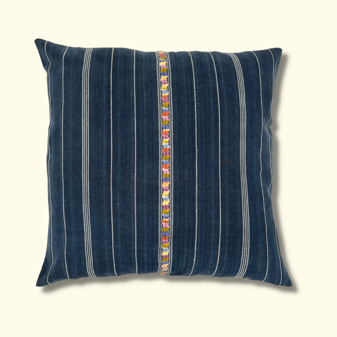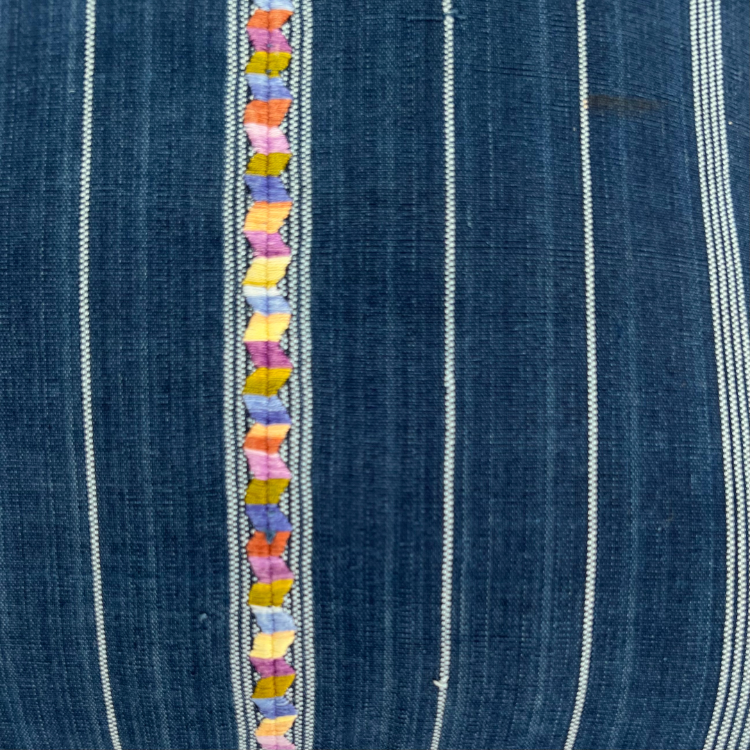 Add a touch of culture and sustainability to your home with Intertwined's handwoven vintage indigo pillow made from a traditional Mayan corte skirt. Embroidered accents and expert tailoring by Ruth & Naomi in Guatemala make this a unique and cheerful addition to your sofa or bed.