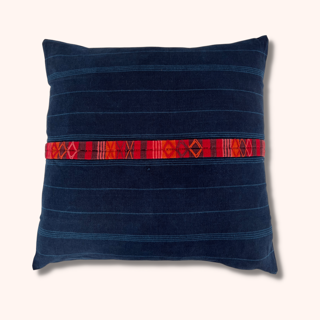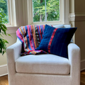 Add a touch of culture and sustainability to your home with Intertwined's handwoven vintage indigo pillow made from a traditional Mayan corte skirt. Embroidered accents and expert tailoring by Ruth & Naomi in Guatemala make this a unique and cheerful addition to your sofa or bed.