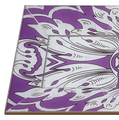 This special reverse painted mirror tray features a striking floral motif in lovely lavender that extends onto an elegant beveled edge.
