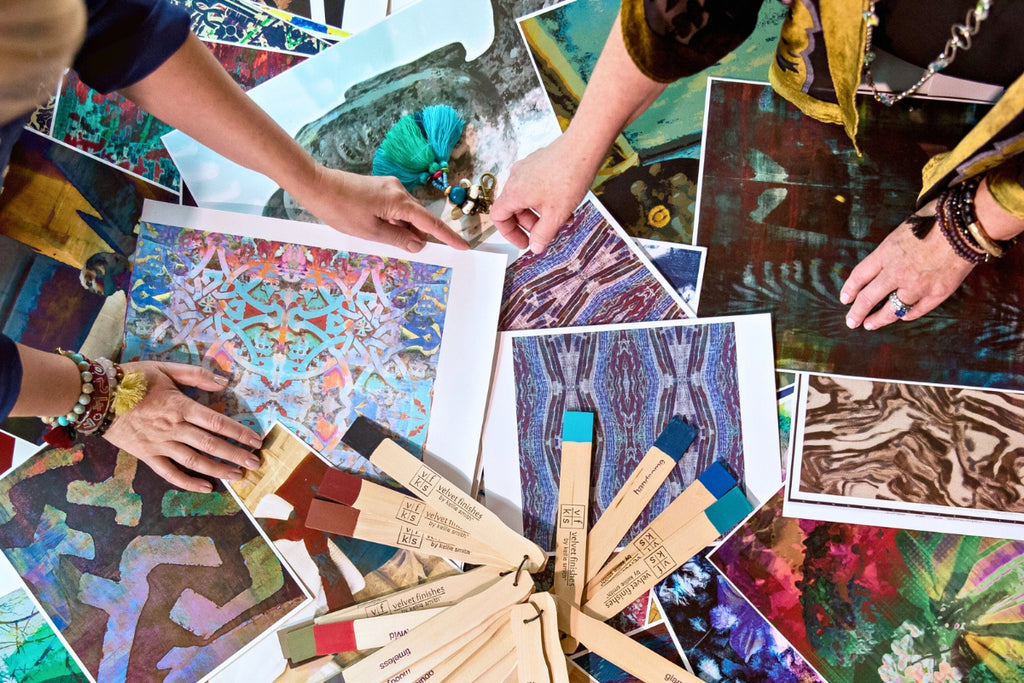 Our designer fabrics begin with memory. A sketch in our studio, a photo snapped in Marrakech, a wild bloom spotted in an English hedgerow—each spark is a moment worth preserving. We layer, collage, and remix those memories into bold, globally inspired textiles. Intentional imperfections. Unexpected color stories. Glitches that give character. Then we turn them into rich, dramatic repeats—printed in small batches on luxe materials.