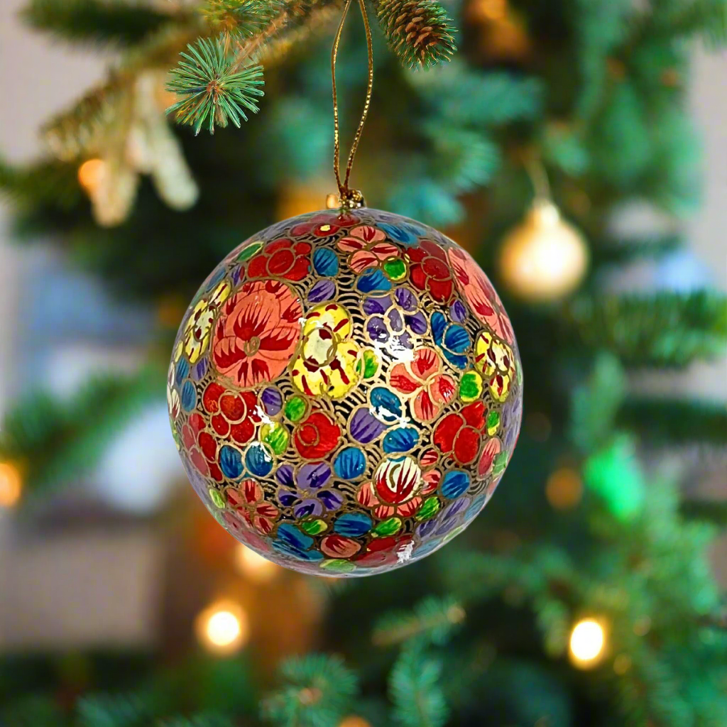 Layer your tree and your home with colorful, casual, handmade items from around the globe.