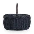 Are you tired of ordinary picnics? Craving a touch of romance in your life? Look no further than the Evening Basket. This handwoven masterpiece is a testament to style and functionality. Crafted from sustainable willow and accented with vegan leather, it's as eco-friendly as it is alluring. Inside, you'll discover a world of indulgence: two pristine porcelain plates to hold your treats, a pair of stemless wine glasses, and a complete set of gold-plated stainless steel cutlery for a touch of decadent luxury. And let's not forget the pièce de résistance: a waiter-style corkscrew that's as elegant as it is efficient. But fear not, picnic lovers, for all these treasures can be neatly tucked away in the lid, leaving plenty of room for your culinary creations. So grab your love and a bottle of red, and let the night enchant you.