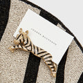 Who doesn't want a zebra at the table? This stunning placecard holder is hand enameled and studded with beautiful, hand-set, crystal coloured stones. These placecard holders are bold, gold and so much fun ... this really is jewelry for the table!