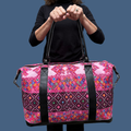 When Intertwined's Huipil Weekender is a smidge too large, choose our Huipil Mini-Weekender. It carries all your essentials and fits under the seat on a plane, attaching to your roller bag with its trolley sleeve. Stunning handwoven vintage huipils are turned into beautiful bags by skilled leather artisans in Guatemala. (Just in case you were wondering, a huipil is a Mayan blouse!)