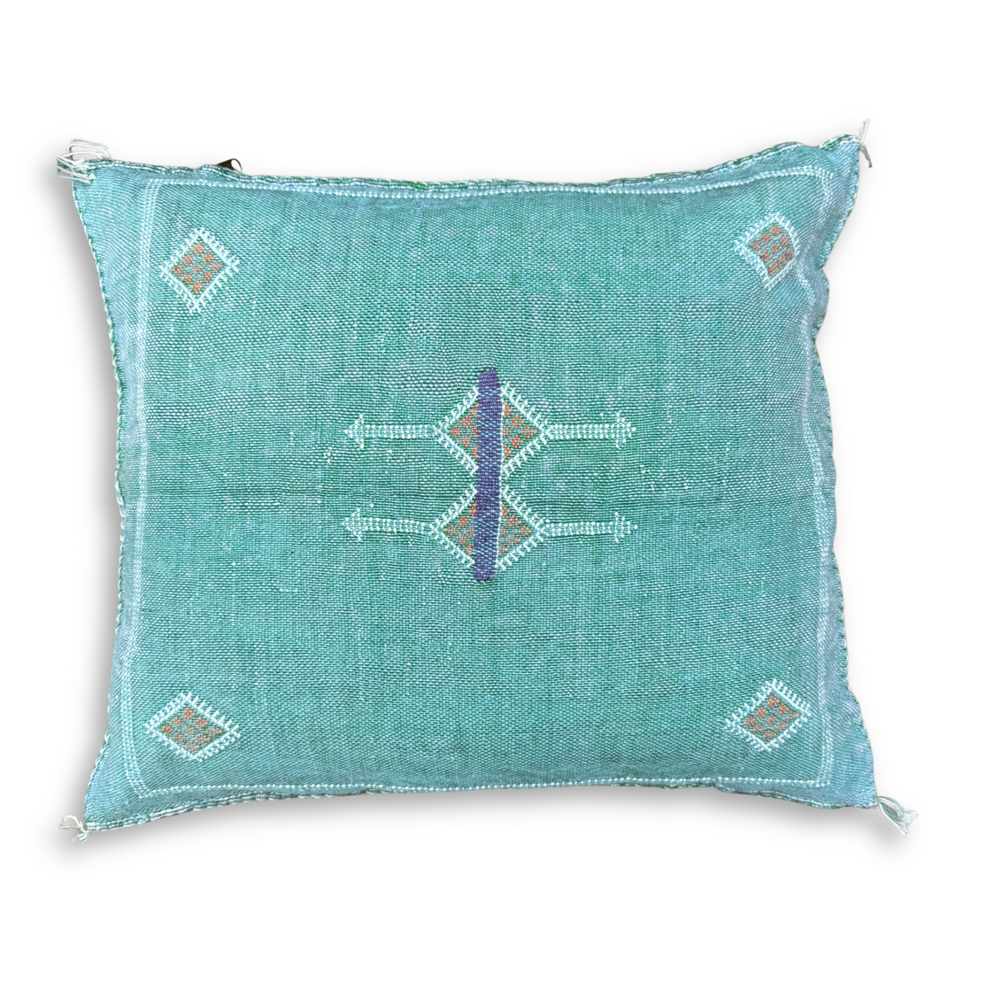 Infuse your home with authentic Moroccan style through Intertwined’s handwoven Sabra cactus silk kilim pillow covers. Traditionally, these textiles were woven from the silk of the Sabra cactus, but today they are crafted from a sustainable natural fiber that offers the same softness and beauty with added durability.