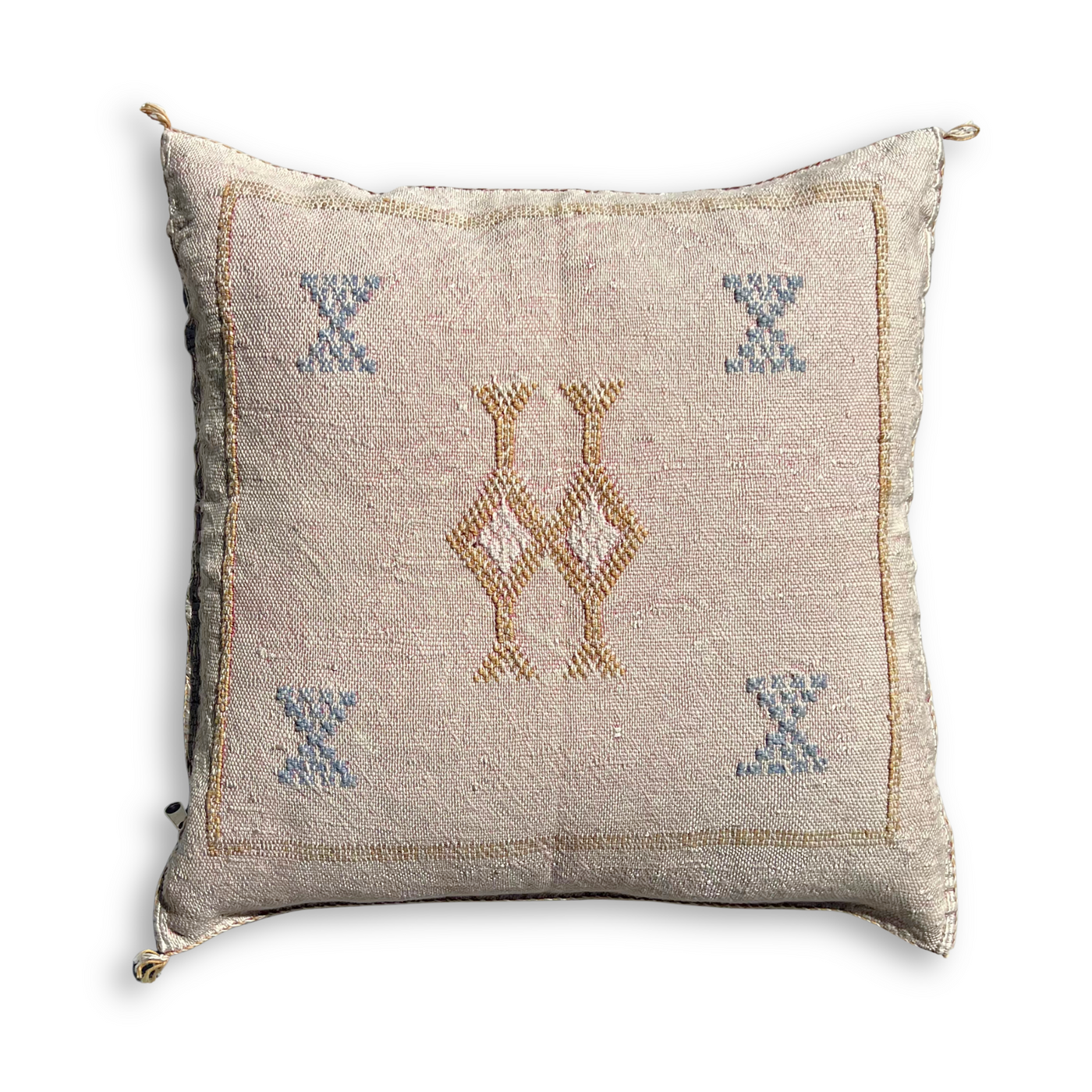 - Light Pink-Beige Sabra Cactus Silk Kilim Pillow Cover | Handwoven Moroccan Home Decor