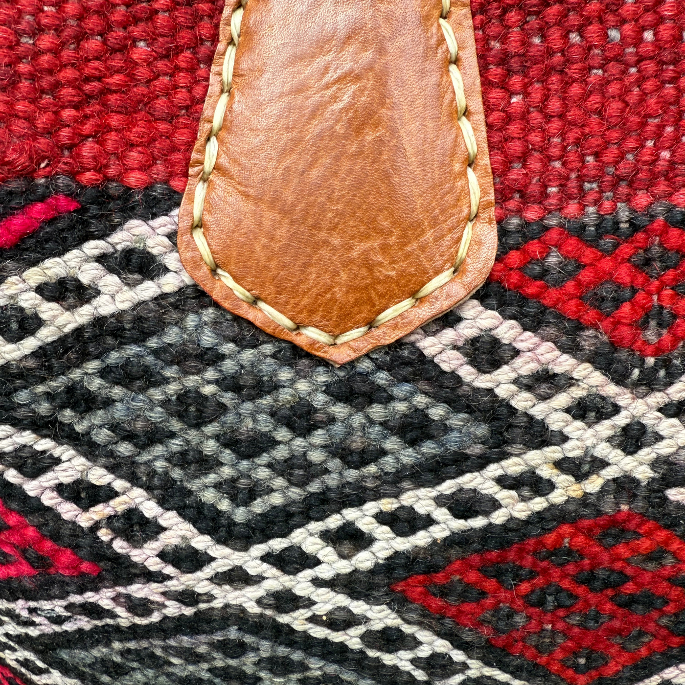 Moroccan sustainably sourced, vegetable tanned leather and wool vintage kilim.