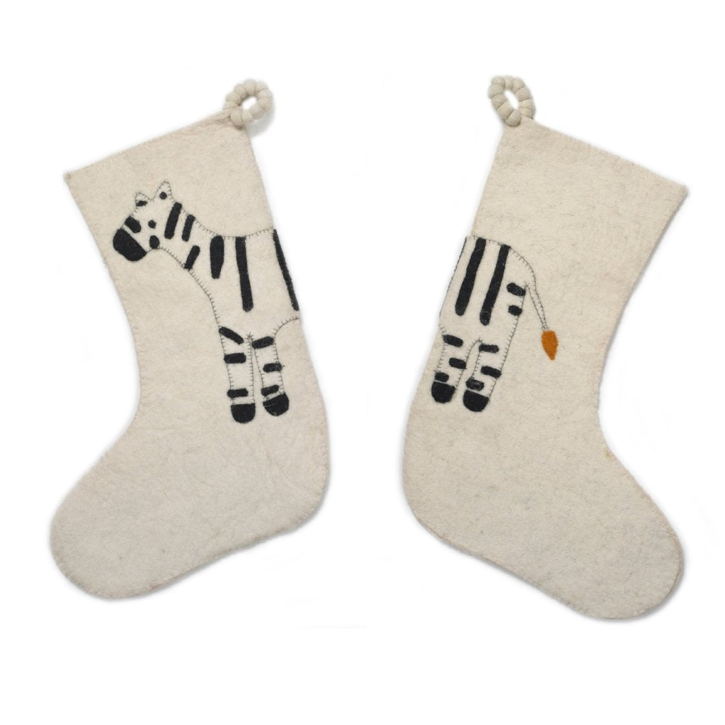 Hand Felted Wool Kids Christmas Stocking - Double Sided Zebra on Cream