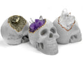 Natural Crystals and Concrete are formed together to create a unique and one-of-a-kind housewarming gift, home accent, or home for your small air plants. You will love our eye-catching cooper colored concrete skulls! The concrete has a super smooth finish, which makes this big scull visually appealing.