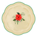 Set against a nostalgic cream canvas, a poinsettia bloom, accented by surrounding mistletoe leaves and delicate berries graces the center, evoking treasured holiday heirlooms from yesteryears. A botanical green rim accentuates its scalloped silhouette, perfect for intimate holiday gatherings and reminiscing over cherished memories. Pair with its matching dinner plate for a harmonious tablescape.