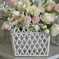 White Square Scalloped Lattice Rattan Planter