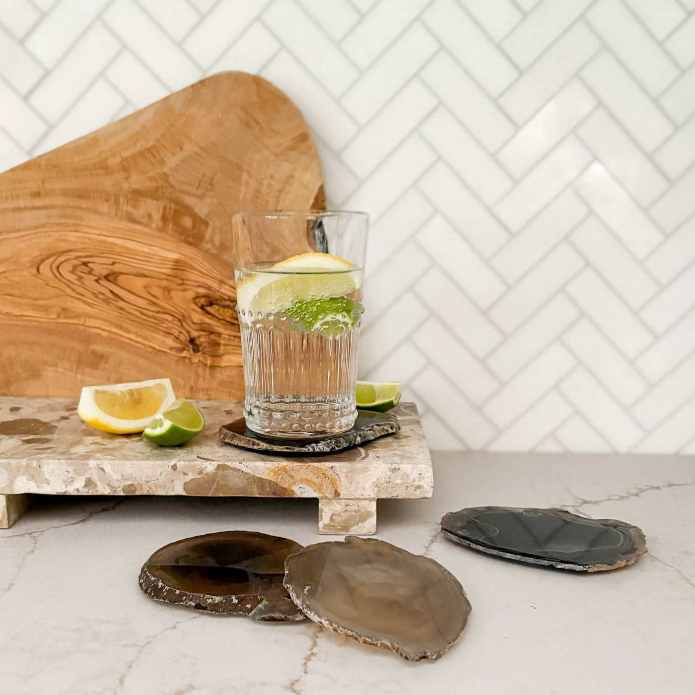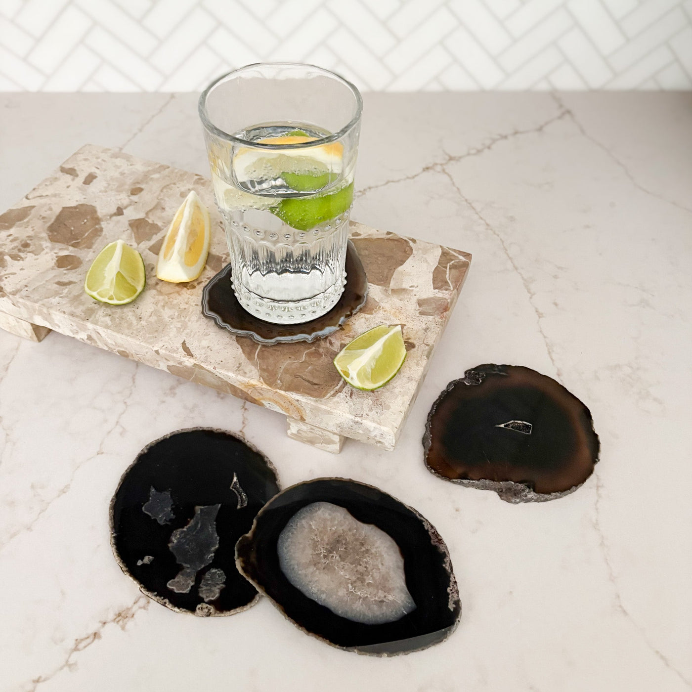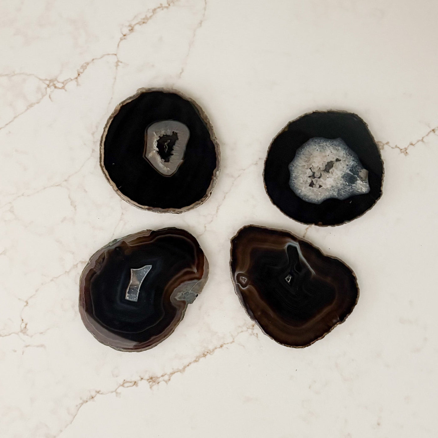 Whether you're entertaining guests or enjoying a quiet night in, our Black Agate Coaster Set is a functional work of art that turns every sip into a moment of style.