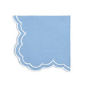 Brighten your table with our delightful light blue Bettina Napkins, beautifully adorned with crisp white wavy scalloped embroidery. This timeless design brings charm to every dining occasion.