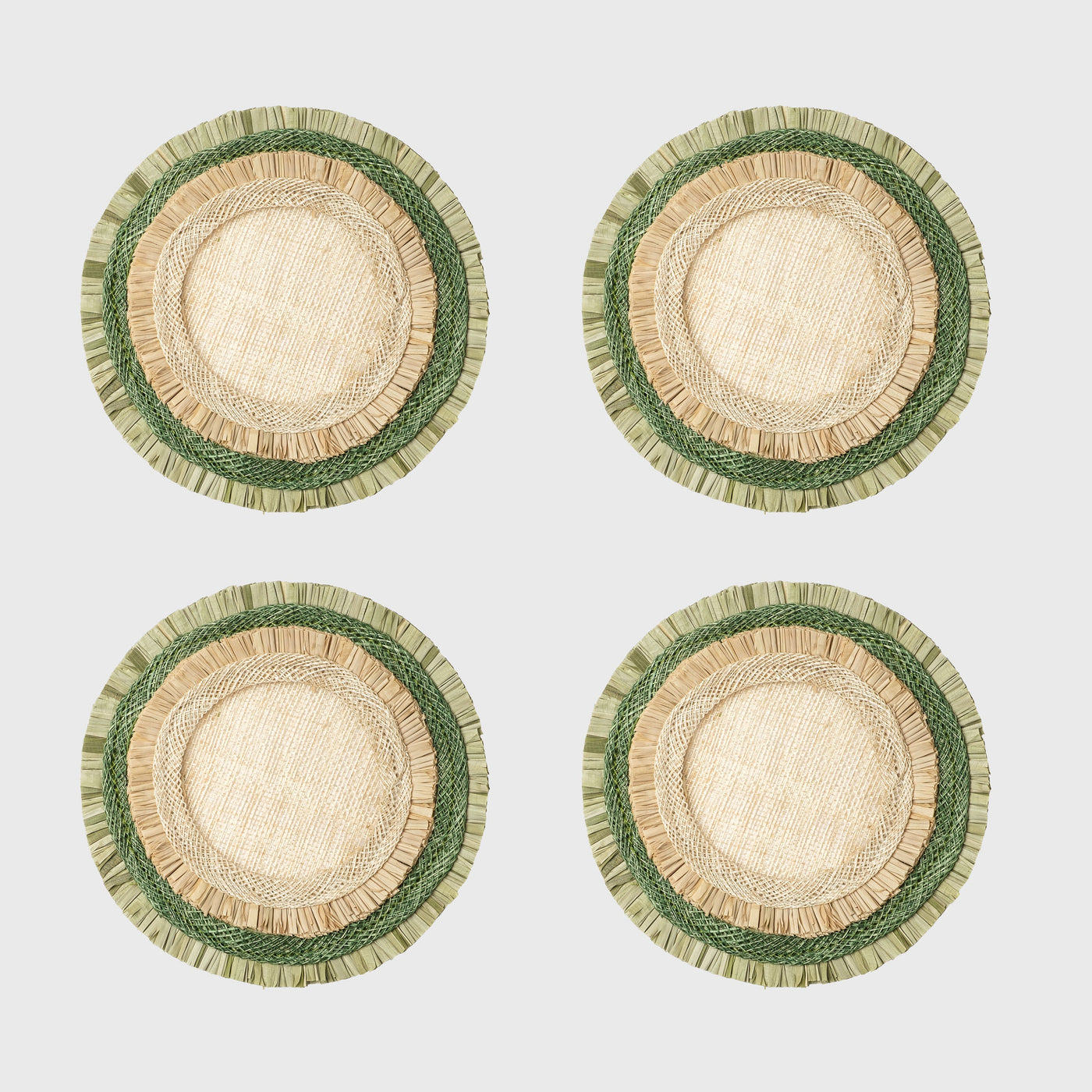 Ruffle edge straw coasters, green