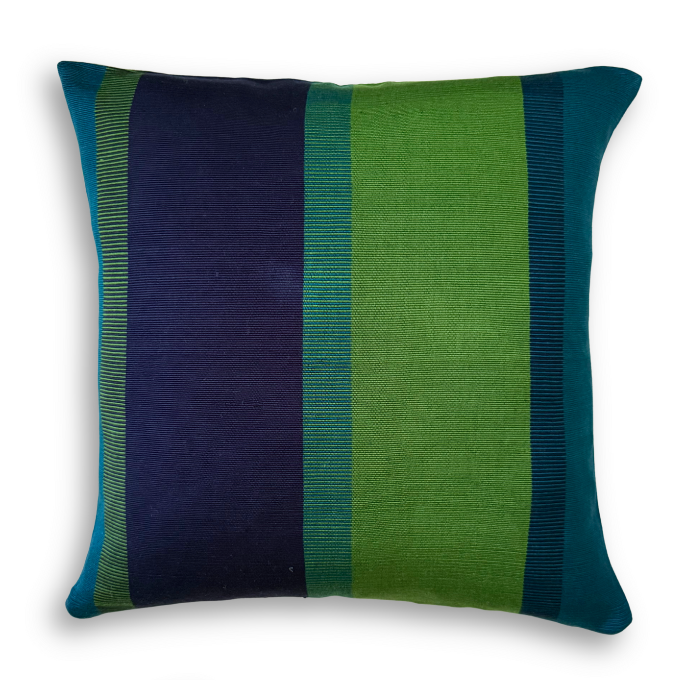Handwoven Color Block & Hemp Pillow - Navy & Green