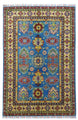 - Hand-Knotted Afghani Kazak Wool Rug – 3’11″ x 6’0″