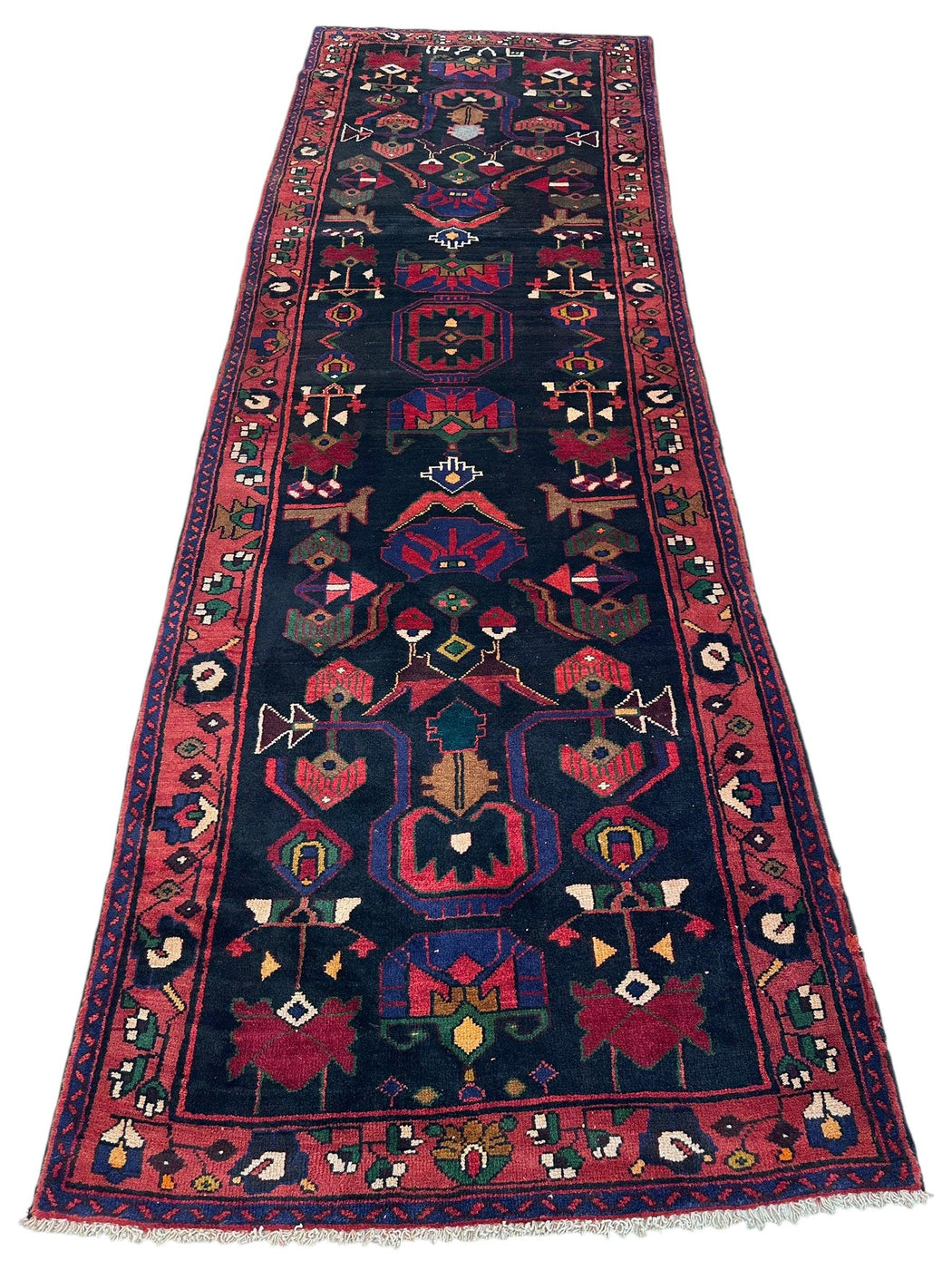 - Hand-Knotted Persian Hamadan Runner - 3'6" x 10' | Tribal Wool Rug