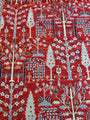 This exquisite soumak multicolor area rug features a stunning blend of intricate tree of life patterns and vibrant hues, handwoven to perfection. Crafted with exceptional detail, this durable area rug brings timeless elegance to any living space. Its unique design and high-quality craftsmanship make it a perfect centerpiece for any room. This rug has been professionally cleaned and is ready for immediate use.