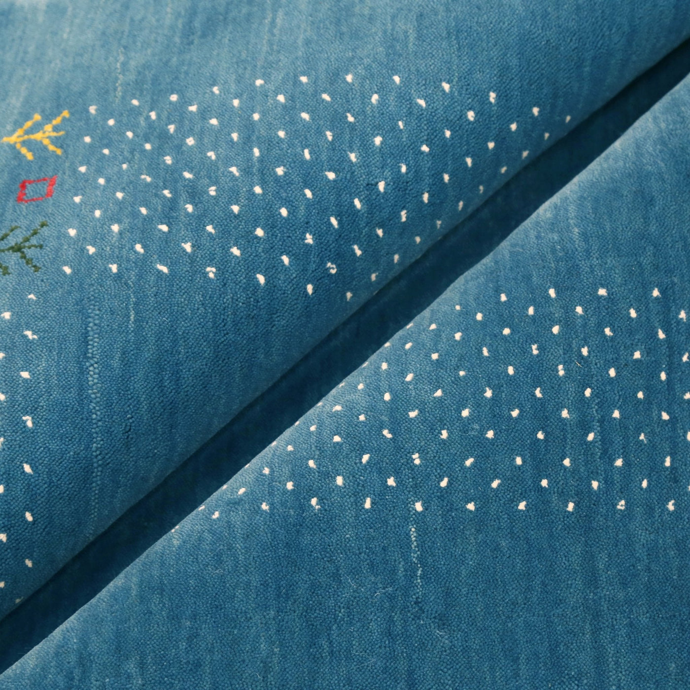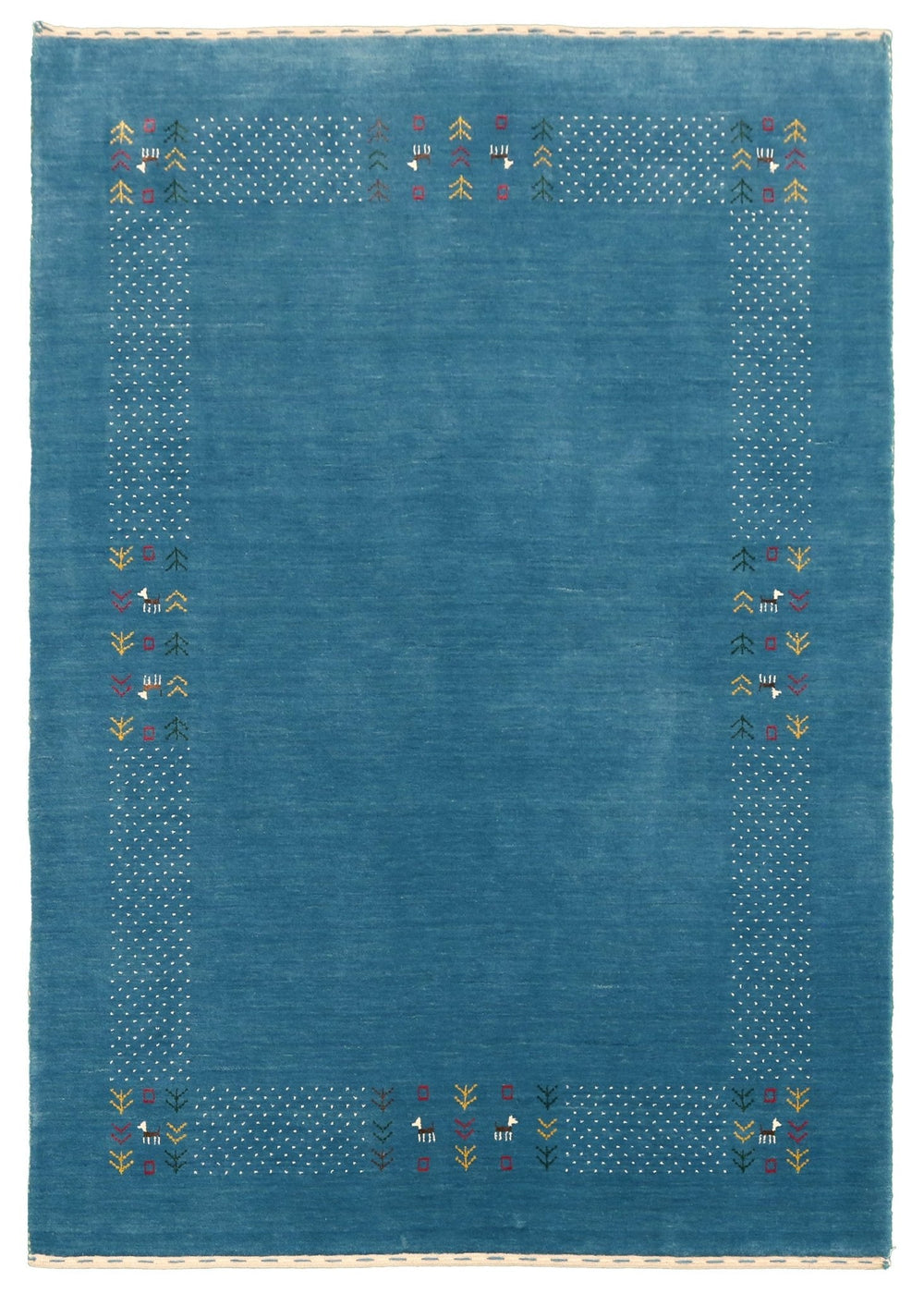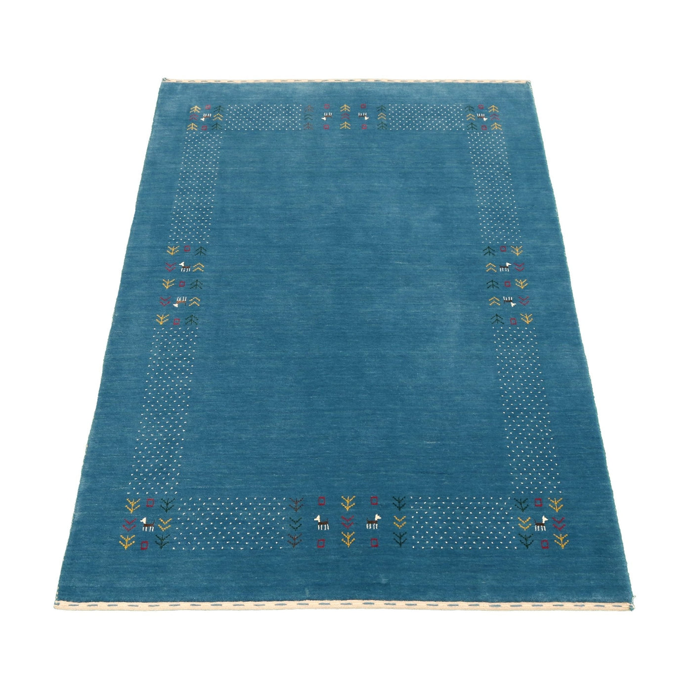 - Solid Blue Border Design Hand Loomed Wool Area Rug