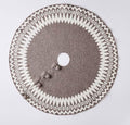 Dimensions: 60" diameter. Center hole: approx. 7". As artisan product, size may vary slightly. Top button can be left unbuttoned to accommodate oversized or oddly-shaped tree stands.