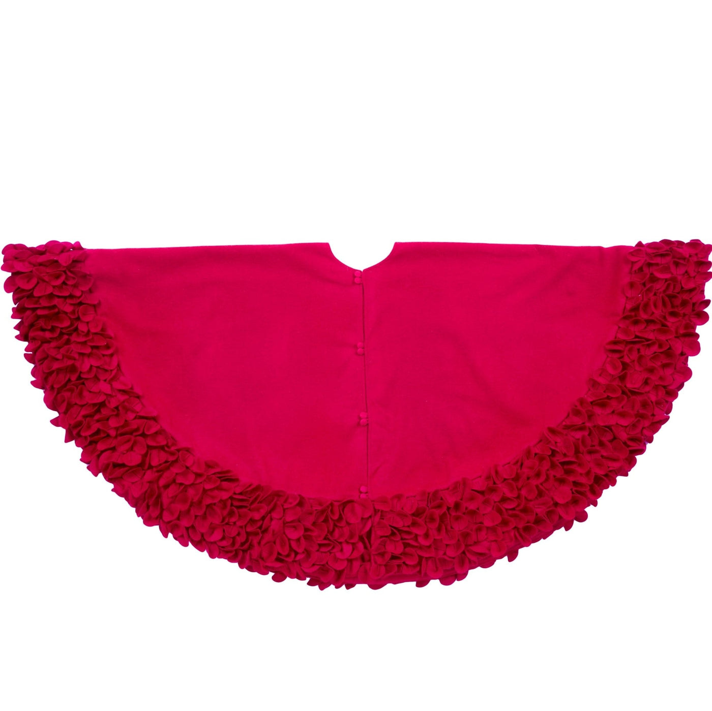 Lovely red calla lily petals adorn the border of this recycled wool tree skirt. An heirloom tree skirt you will look forward to seeing year after year.