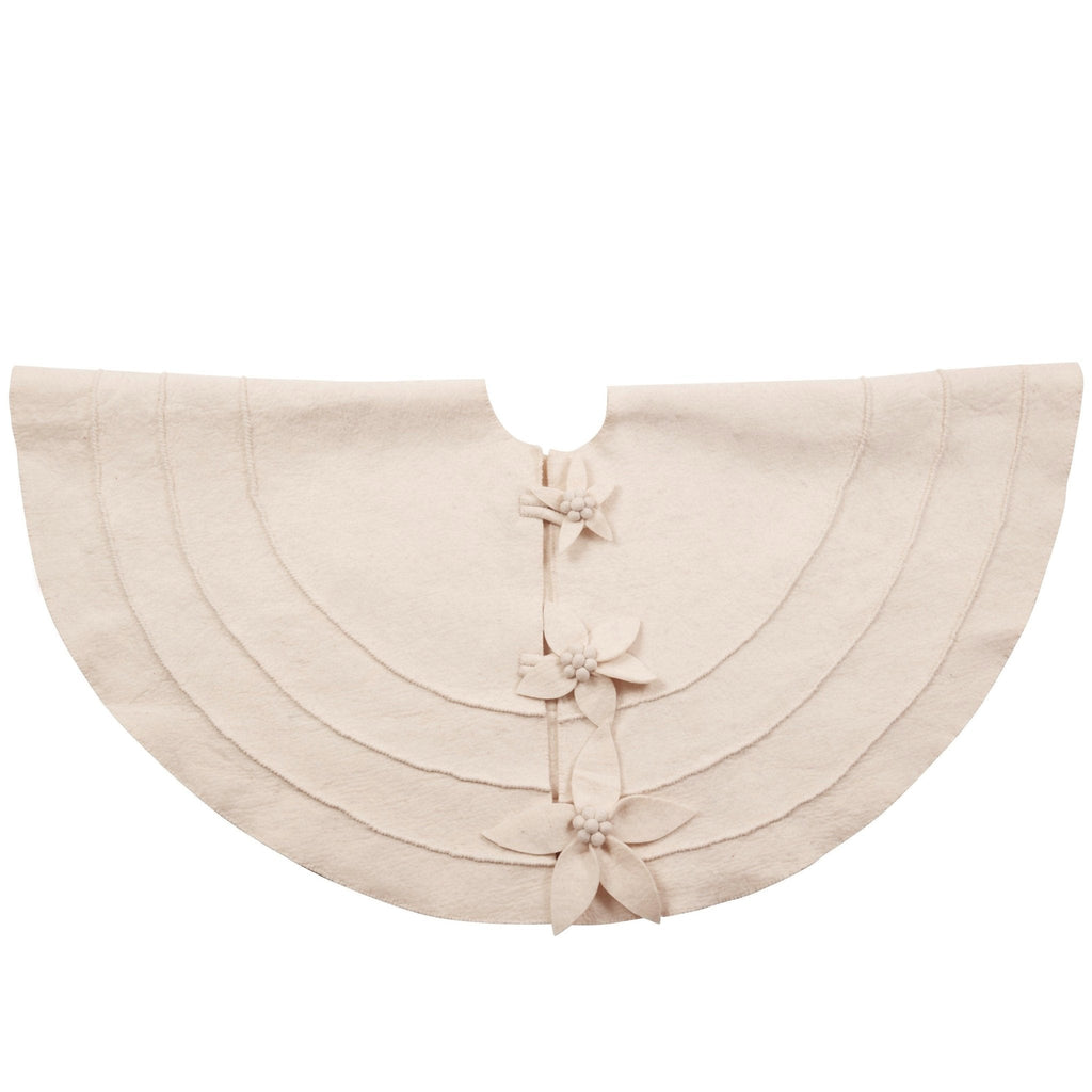 Poinsettia Buttons Cream Hand Felted Wool XL Christmas Tree Skirt 72" Arcadia Home