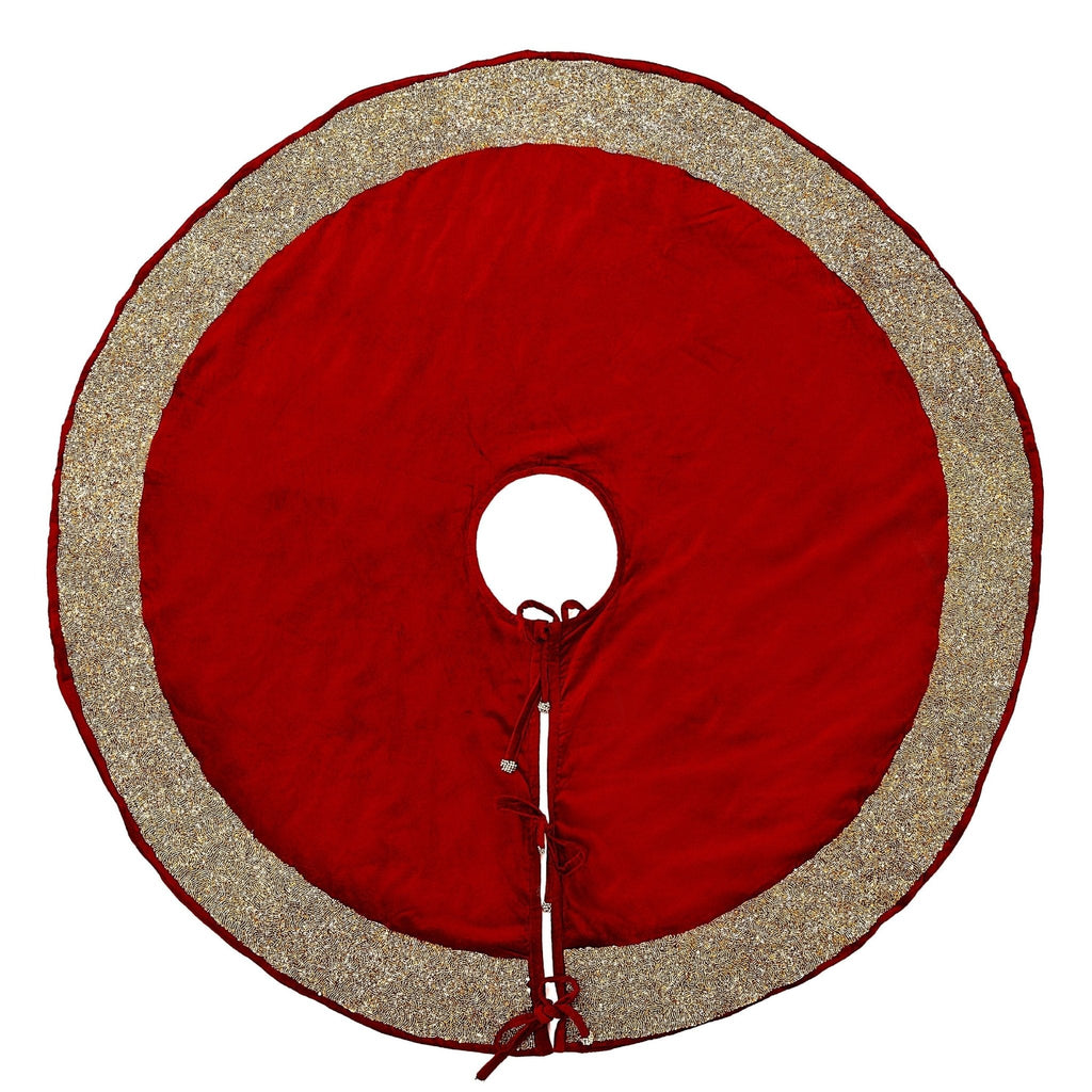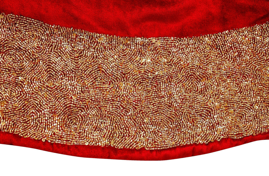 Red Velvet Christmas Tree Skirt Hand Beaded Gold Border - 60" / 72" Arcadia Home