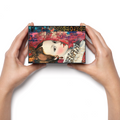 With a side glance as sharp as her ruffled collar, Opalina is elegance with an edge. This artful matchbox is a love letter to the classics, reimagined through a maximalist lens. Regal, radiant, and unapologetically extra, she’s set against a layered backdrop of pink, gold, and textural brushstrokes that blend old-world beauty with a pop-art punch.