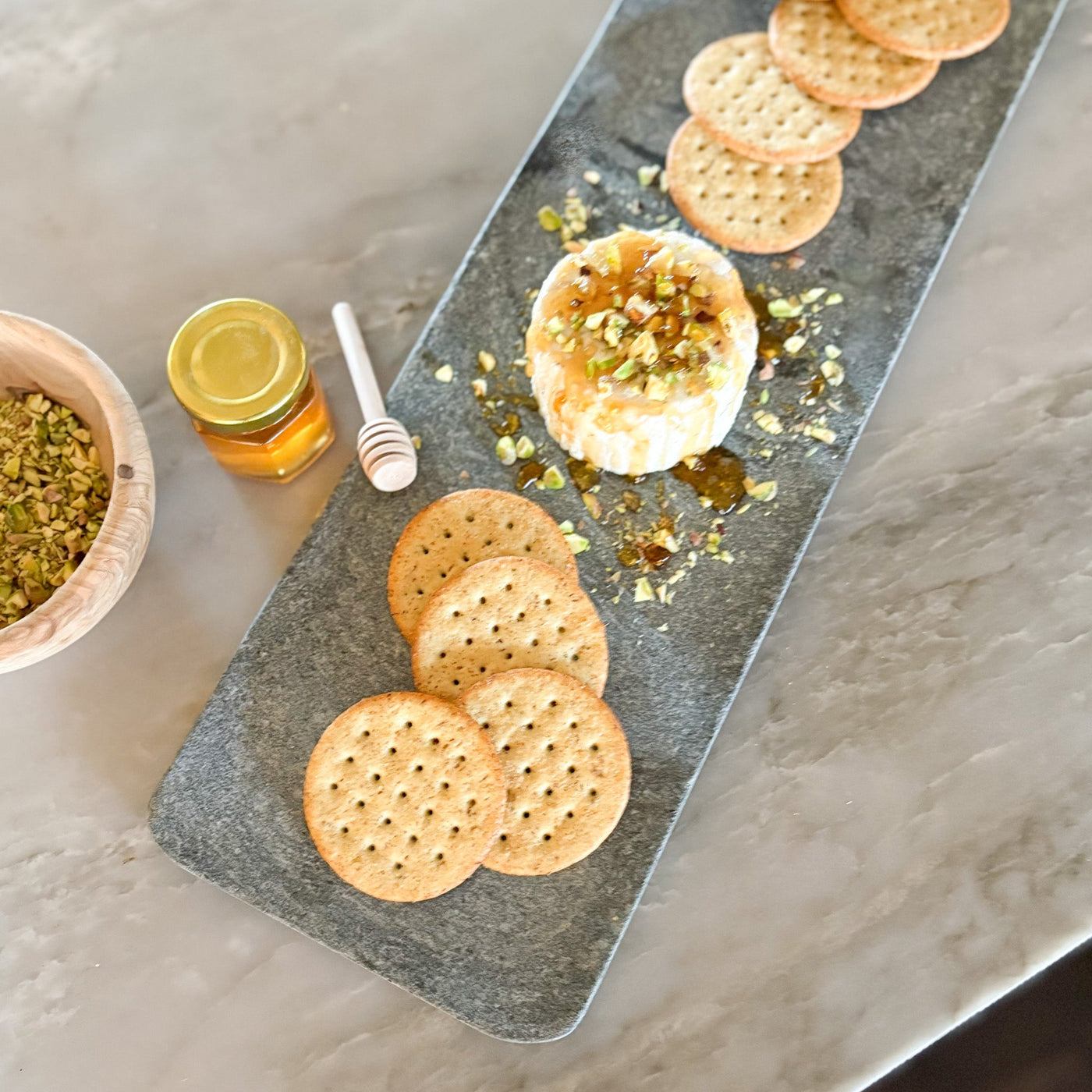 Transform the way you serve and present with our Hand-Carved Slate Tray - a stunning fusion of natural elegance and functional design. Whether you're hosting a cozy dinner party, arranging a charcuterie board, or displaying decor, this one-of-a-kind tray exudes timeless charm and sophistication.