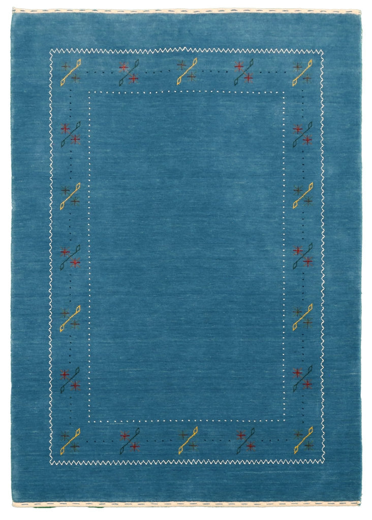 Blue And White Gabbeh Border Design Hand Loomed Wool Area Rug