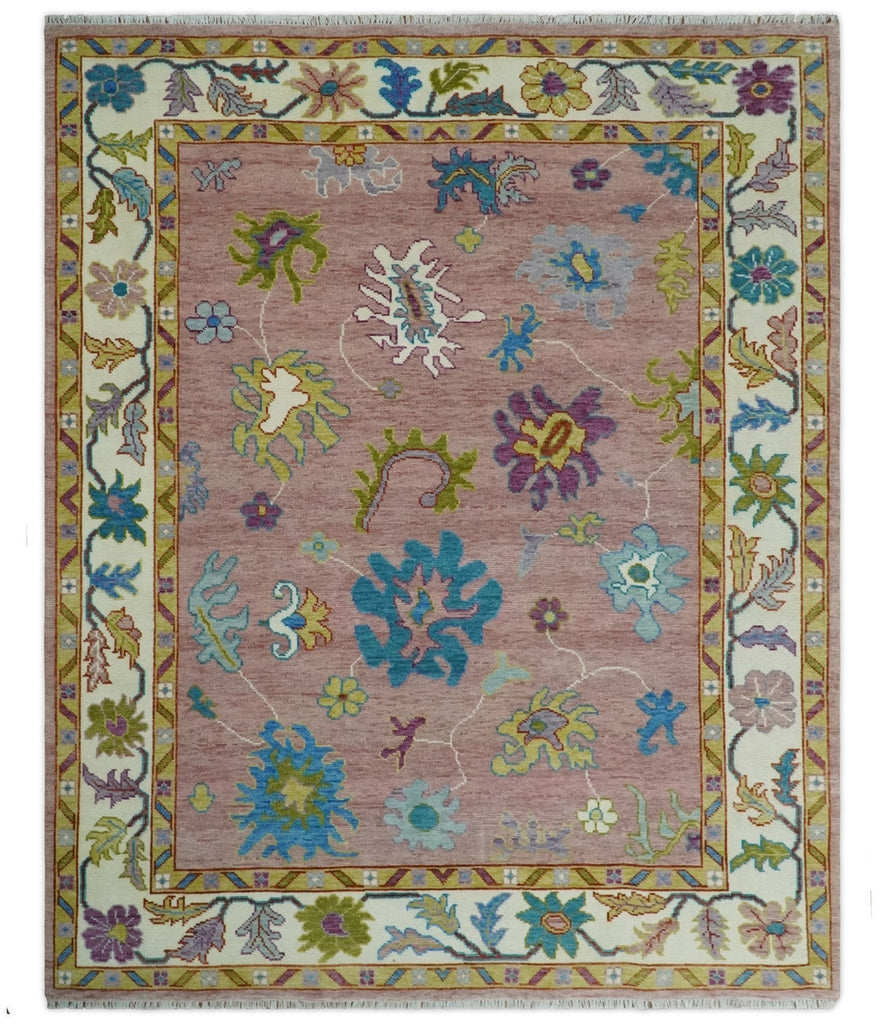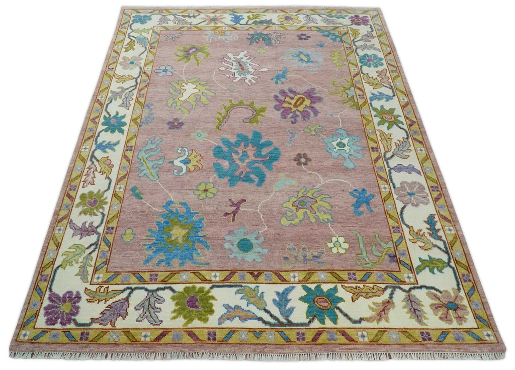Custom Made Hand Knotted Pink and Ivory Colorful Oushak Rug
