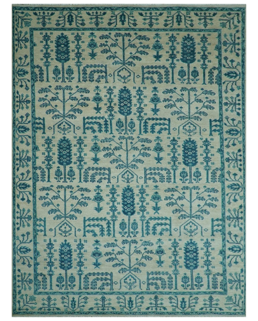 Custom Made Aqua and Green Hand knotted Traditional Oushak wool area Rug