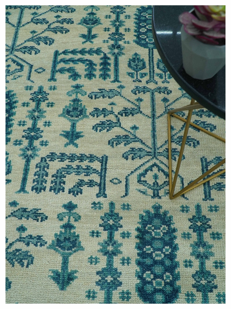 Custom Made Traditional Tree of Life Teal And Ivory Hand Knotted Wool Rug