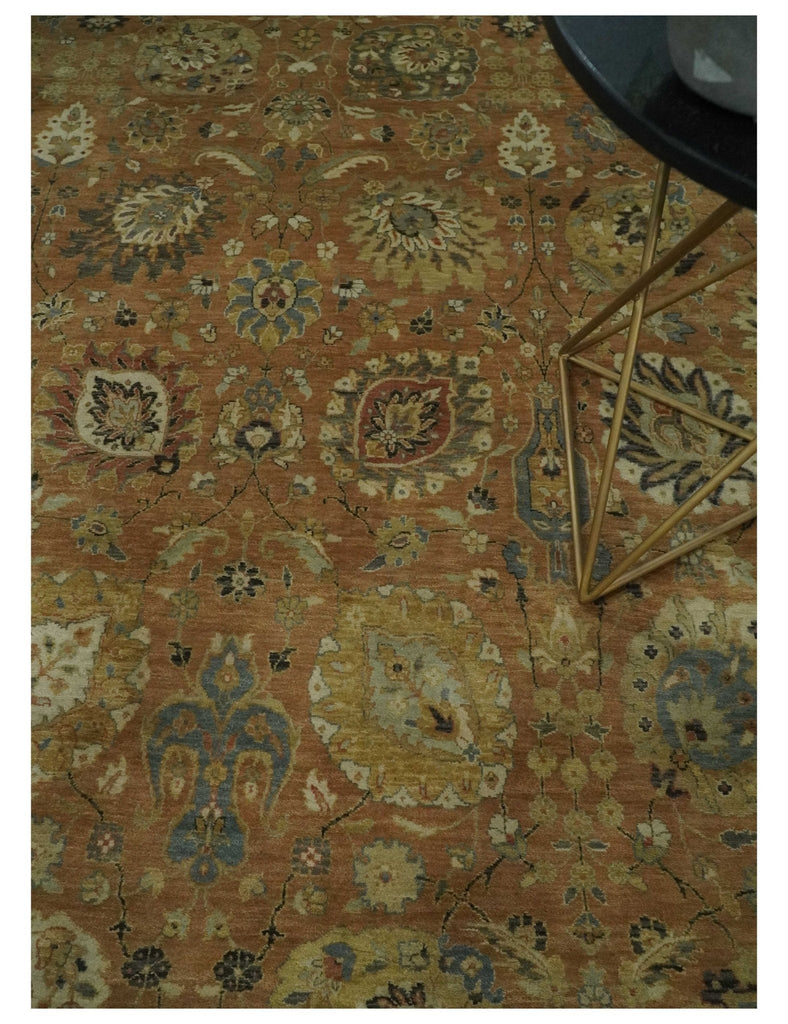 Blue and Mustard Hand knotted Traditional Oriental Oushak 9x12 wool Area Rug