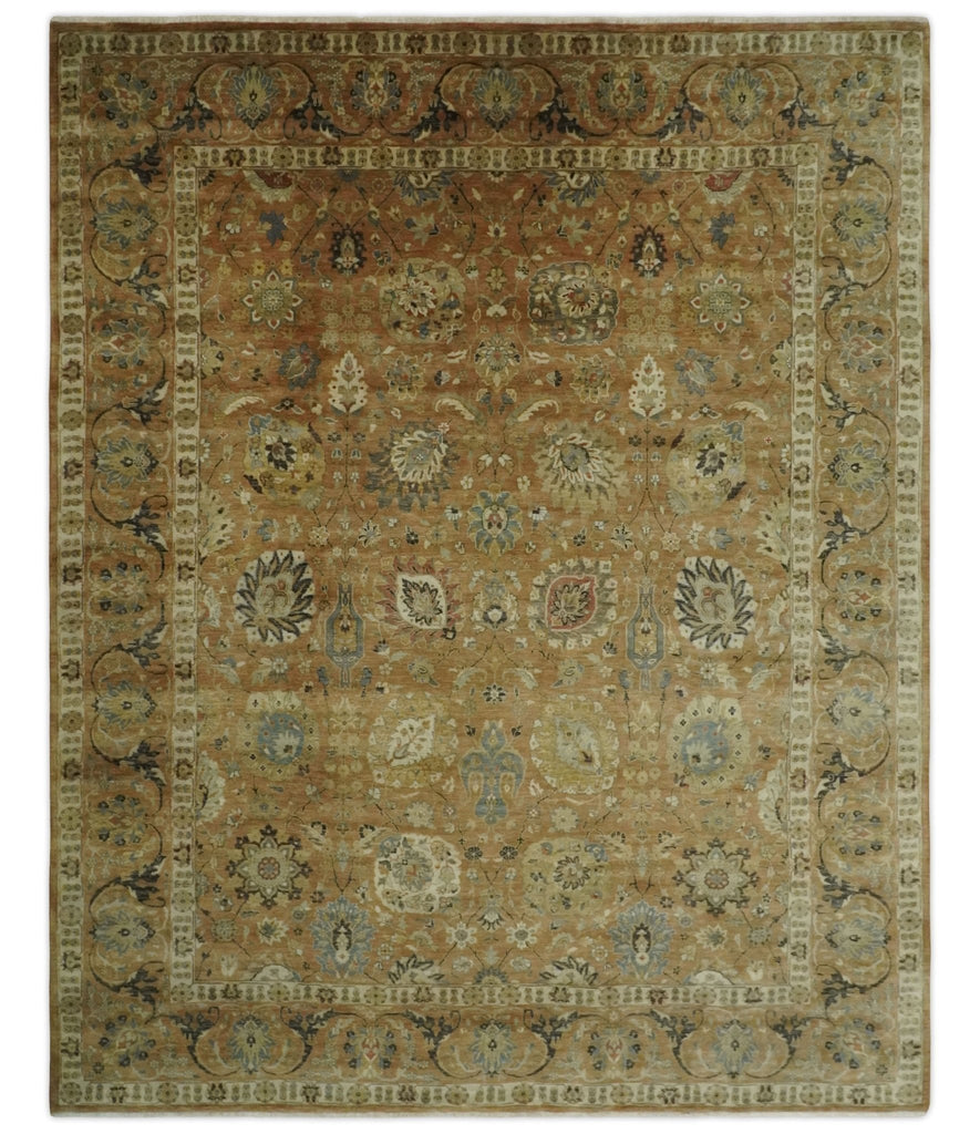 Beige And Brown Traditional Floral Design Hand Tufted 8x10 Wool Area Rug