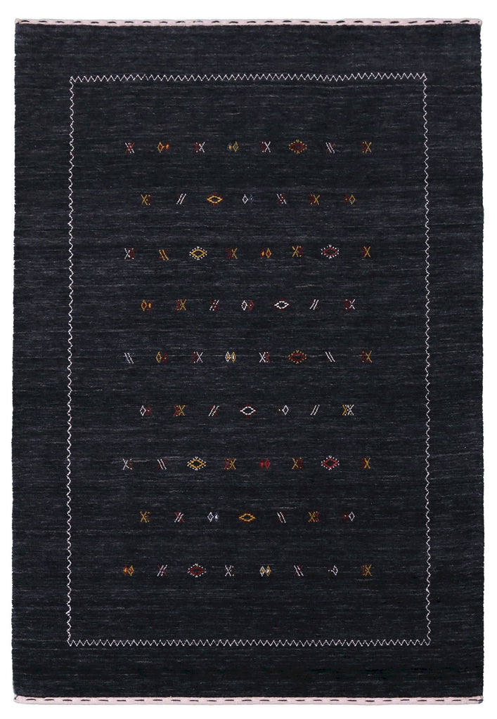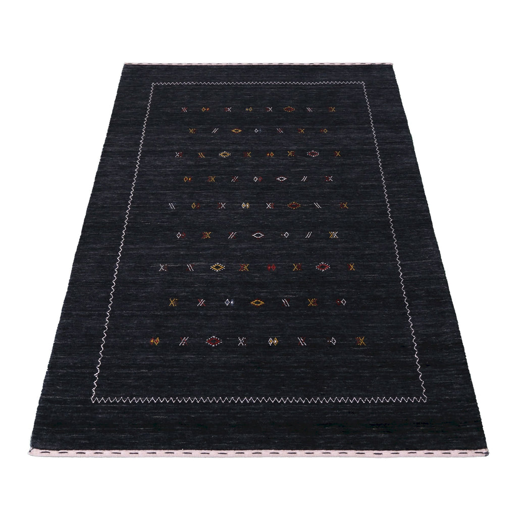 Modern Charcoal And White Hand Loomed Wool Area Rug