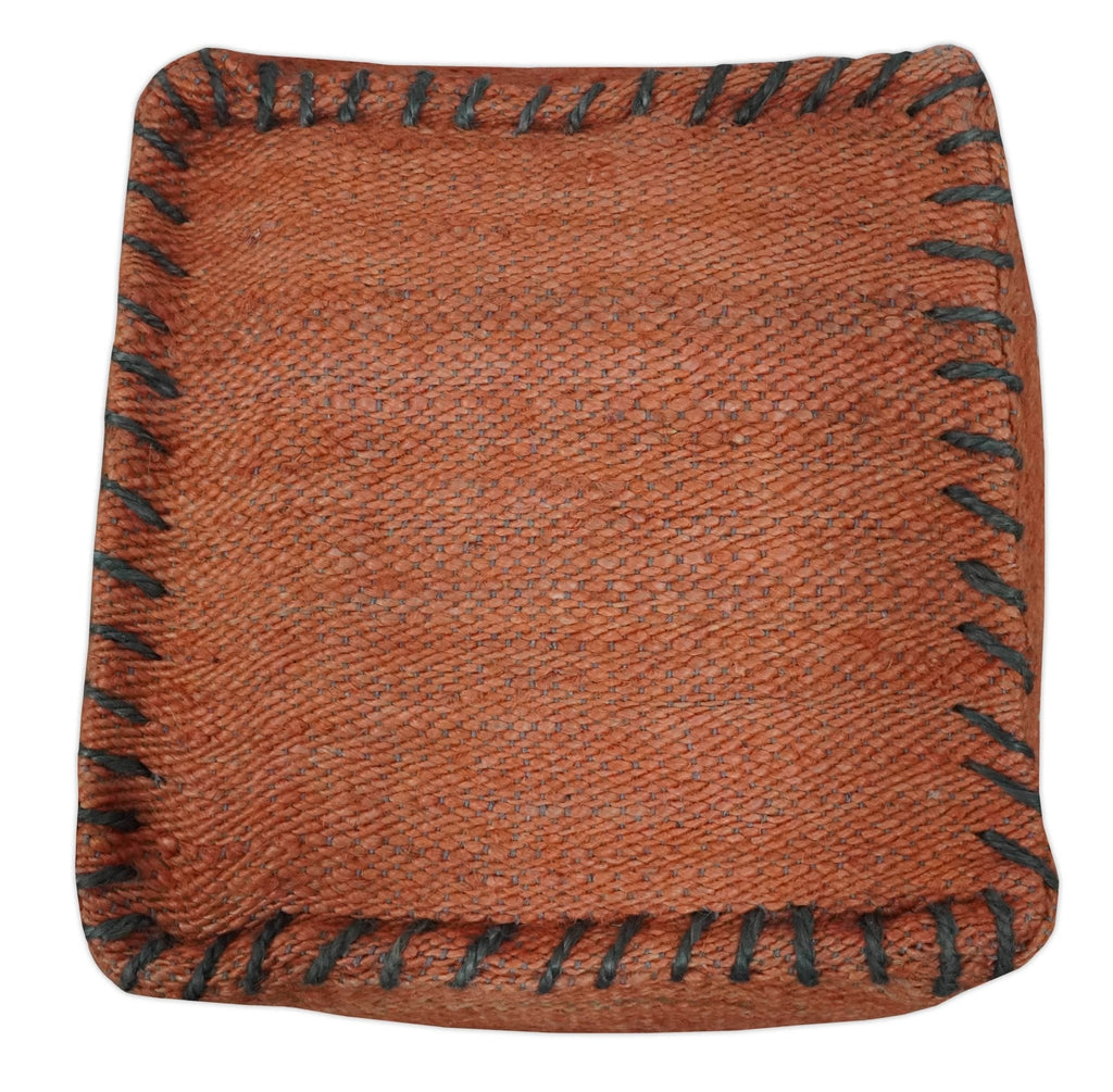 Hand Woven Boho Farmhouse Rust and Gray Jute Pouf ottoman | TRD129P