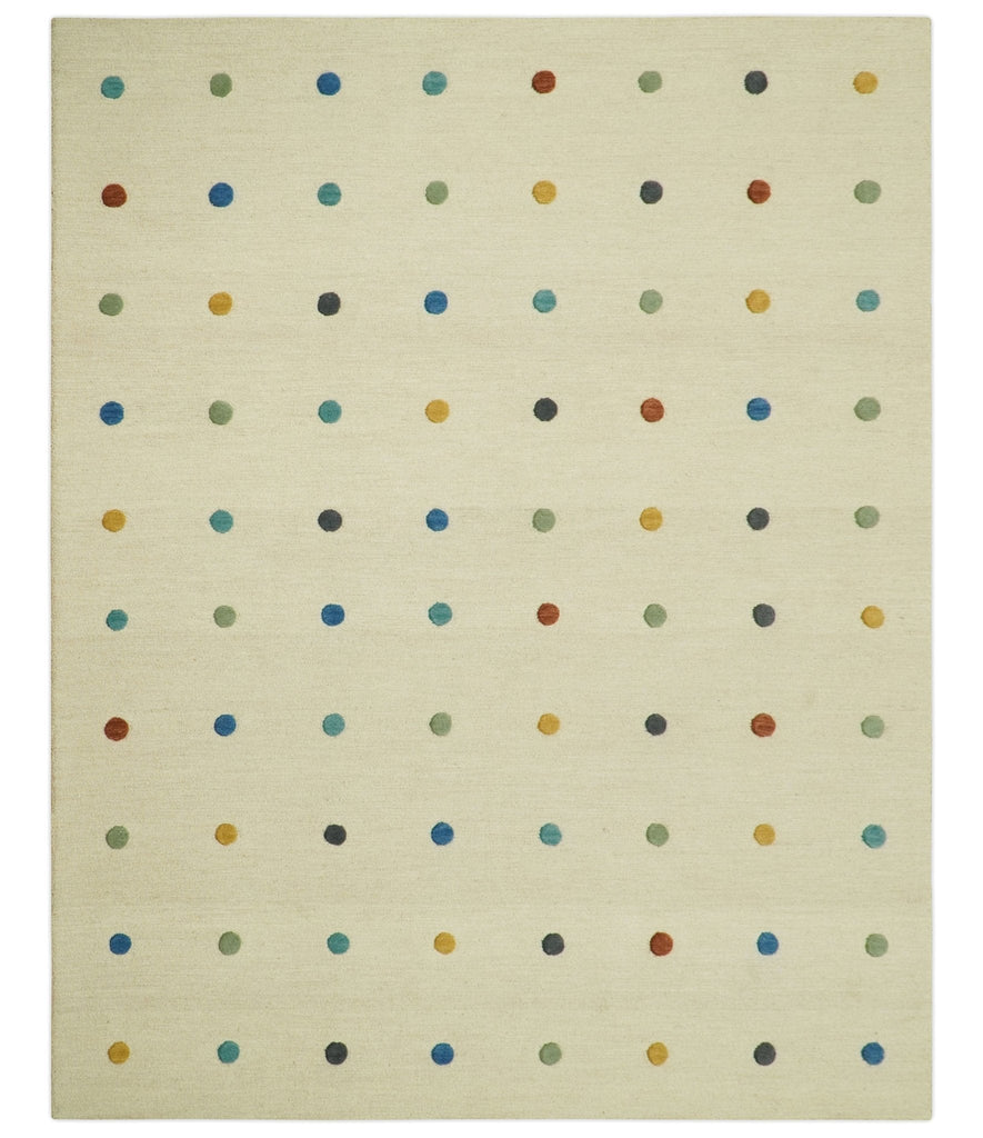 Modern Colorful Polka Dot Beige 8x10 Hand Tufted wool area rug