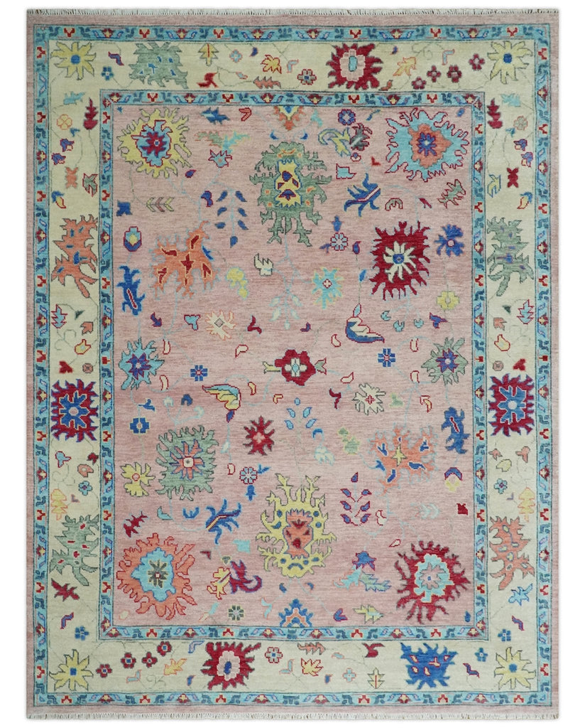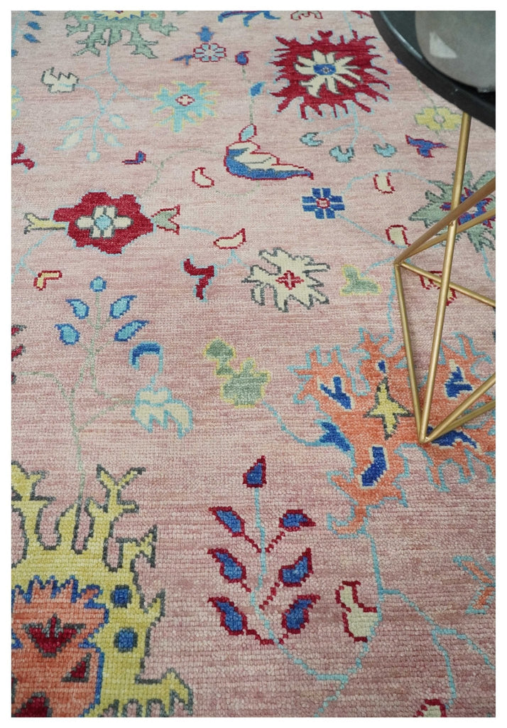 Modern Pink Rug 8x10 and 9x12 Wool Colorful Hand knotted Oushak Area Rug