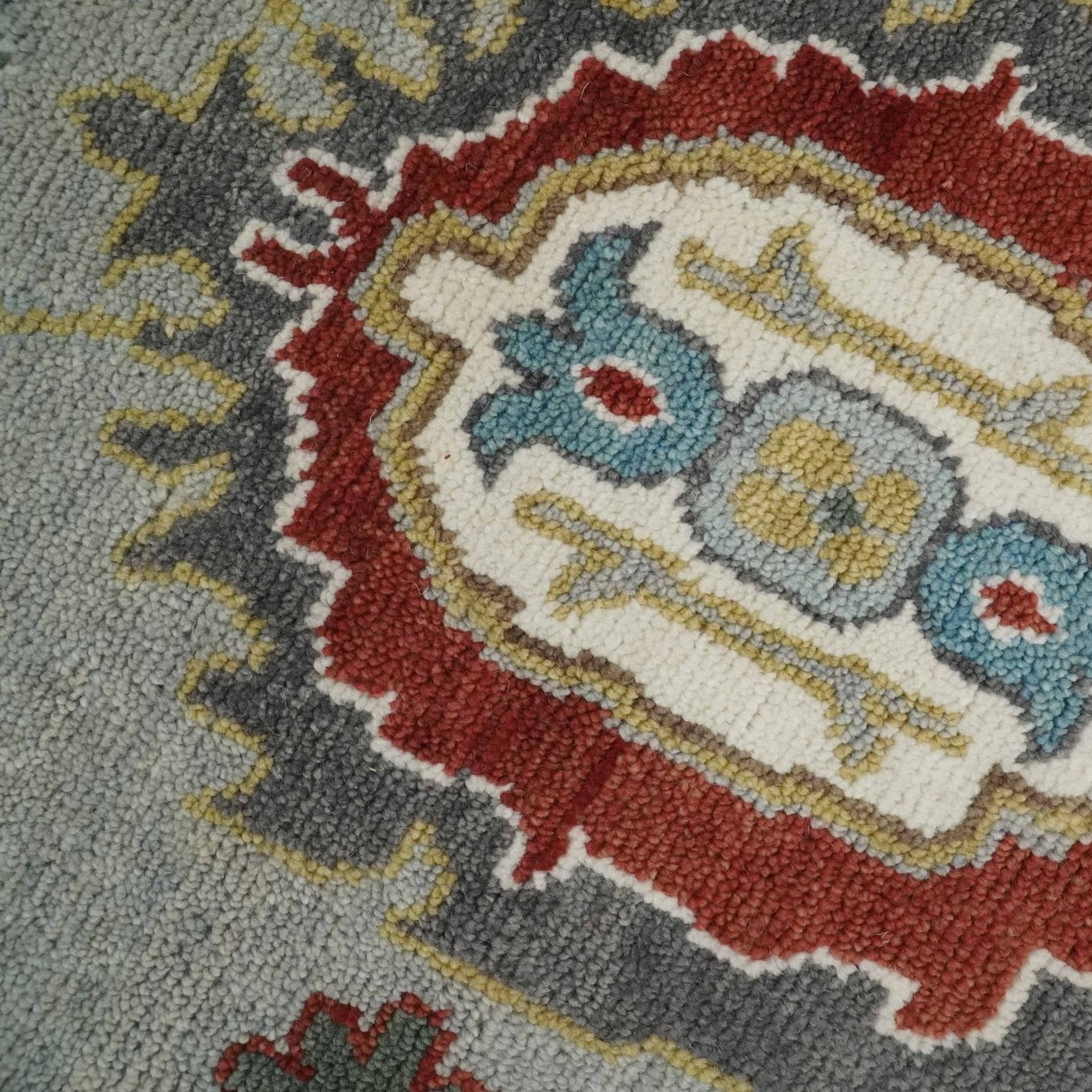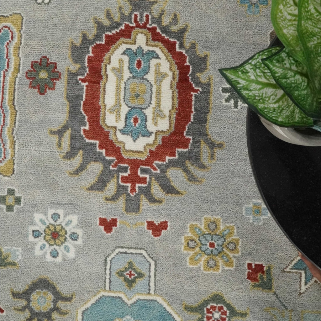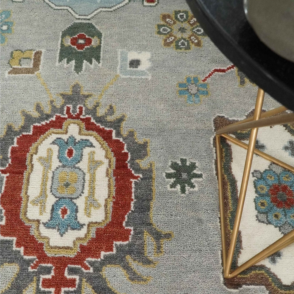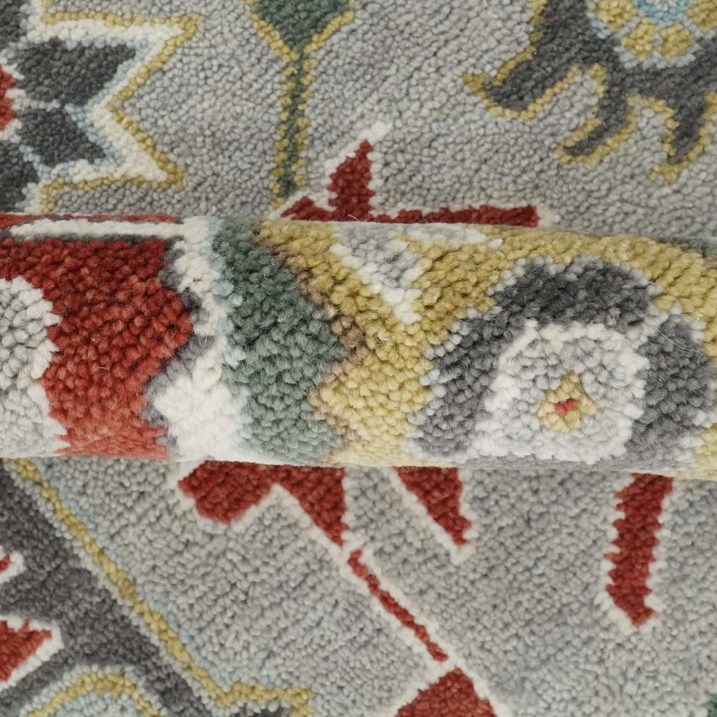 - 10x14 All Wool Traditional Silver and Blue Vibrant Colorful Hand knotted Oushak Area Rug
