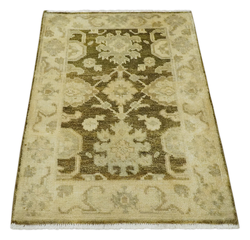 2x3 Hand Knotted Olive, Beige and Gray Traditional Persian Oushak Wool Rug | N4323