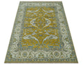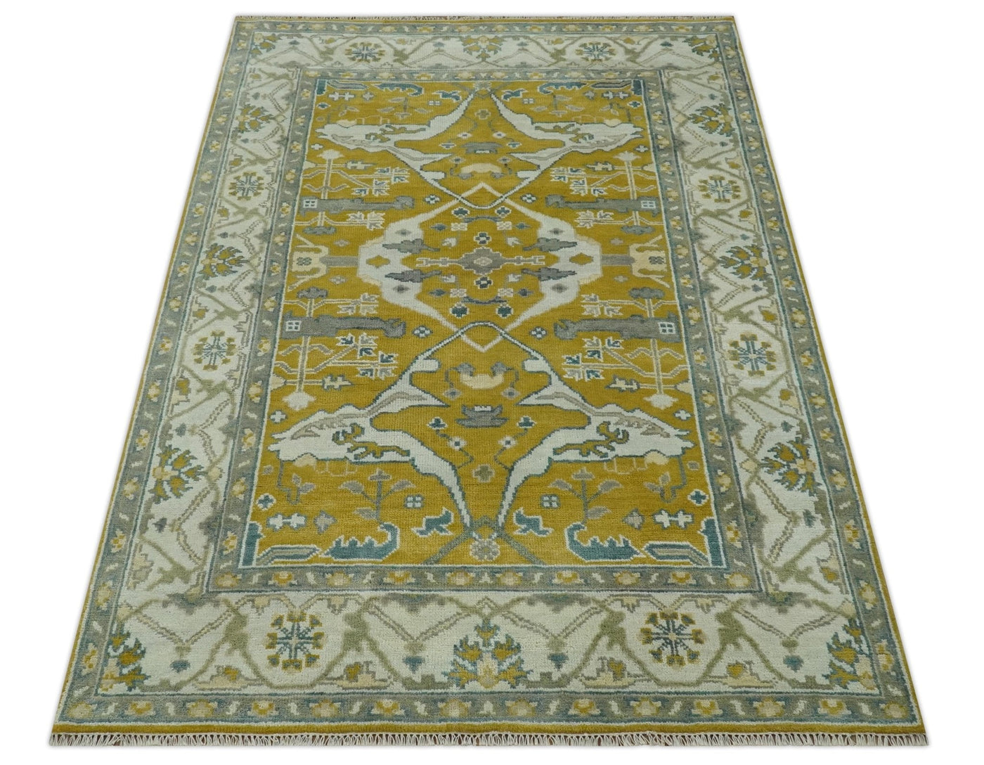 6x9 Mustard, Ivory and Gray Hand Knotted Traditional Oriental Oushak wool area rug