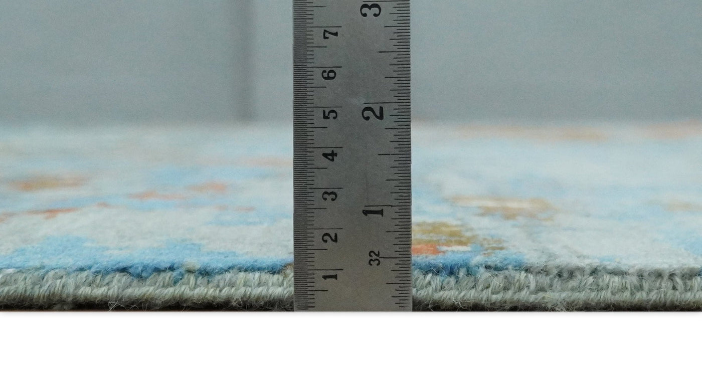 - 8x10 Fine Hand Knotted Beige and Blue Modern Abstract Style Antique Wool and Silk Area Rug | AGR43