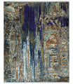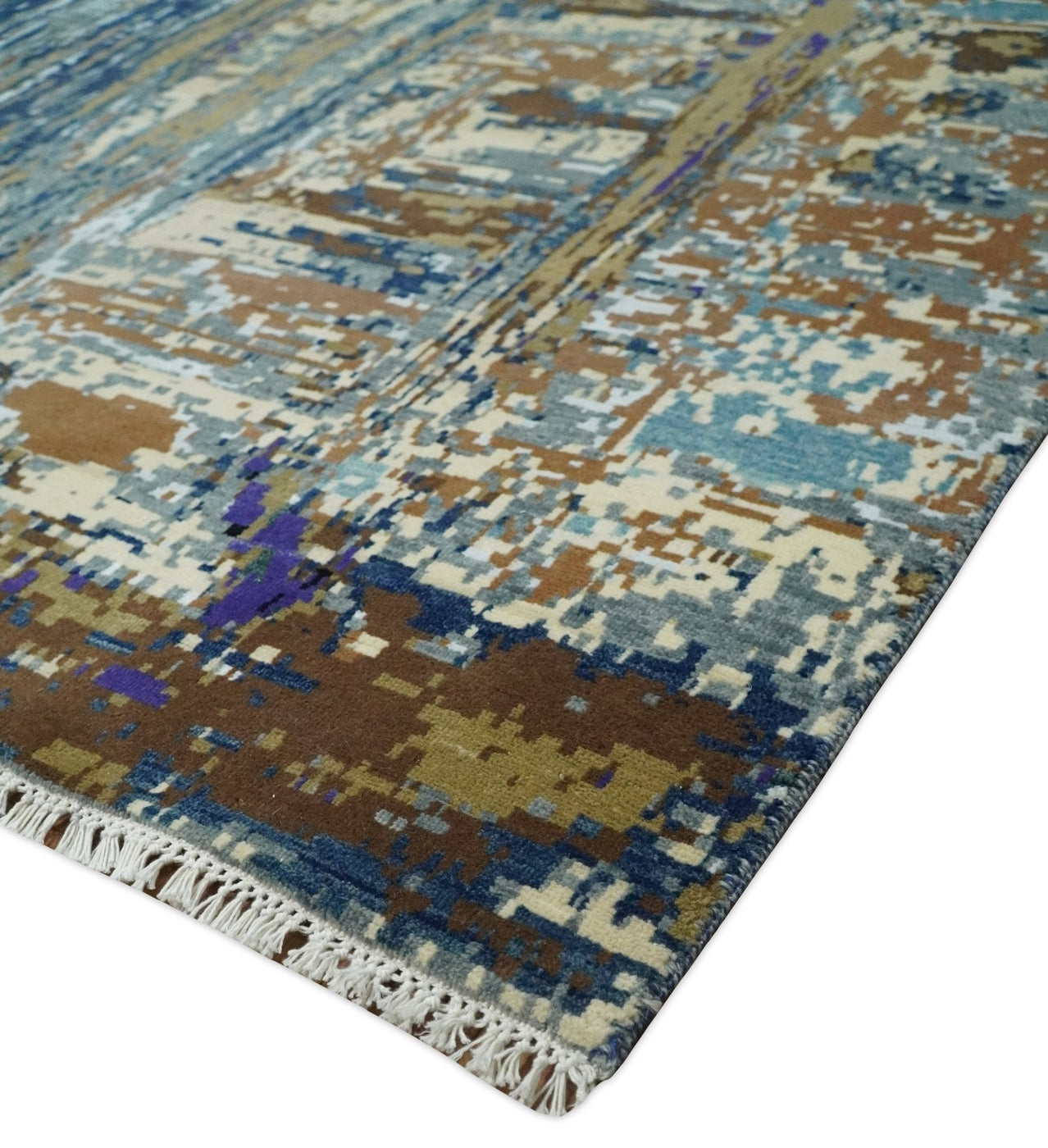 - 8x10 Fine Hand Knotted Brown Multicolor Modern Abstract Wool and Bamboo Silk Area Rug | AGR19