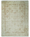 - 9x12 Fine Hand Knotted Beige and Brown Traditional Vintage Persian Style Antique Wool and Silk Rug | AGR46