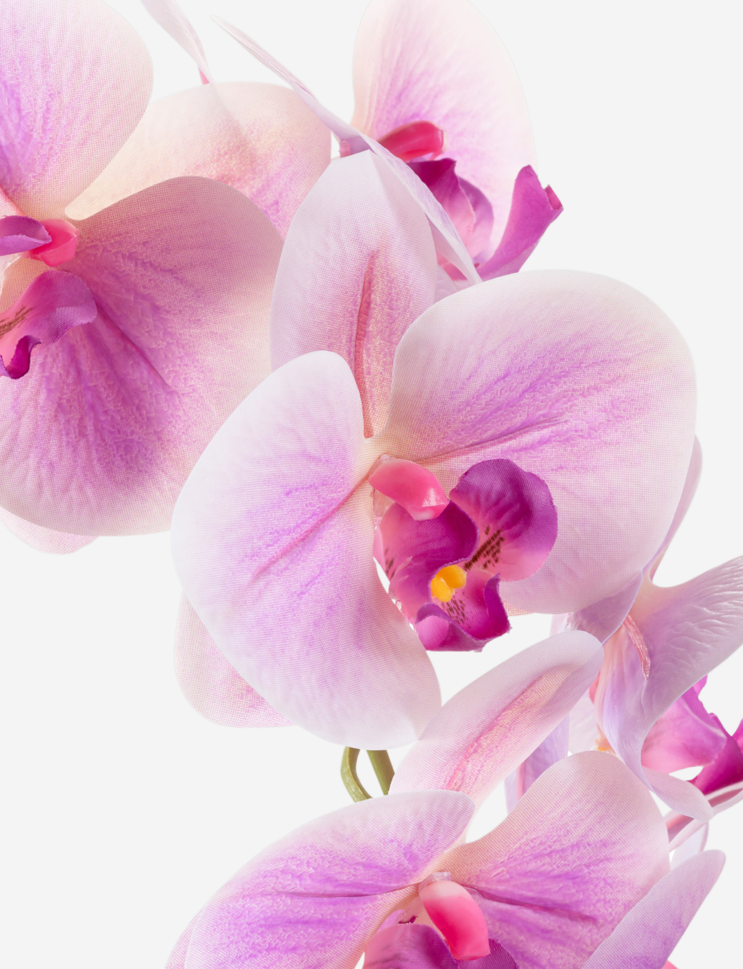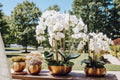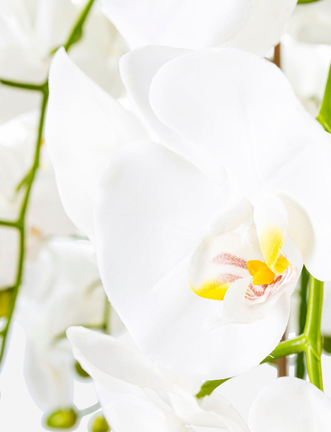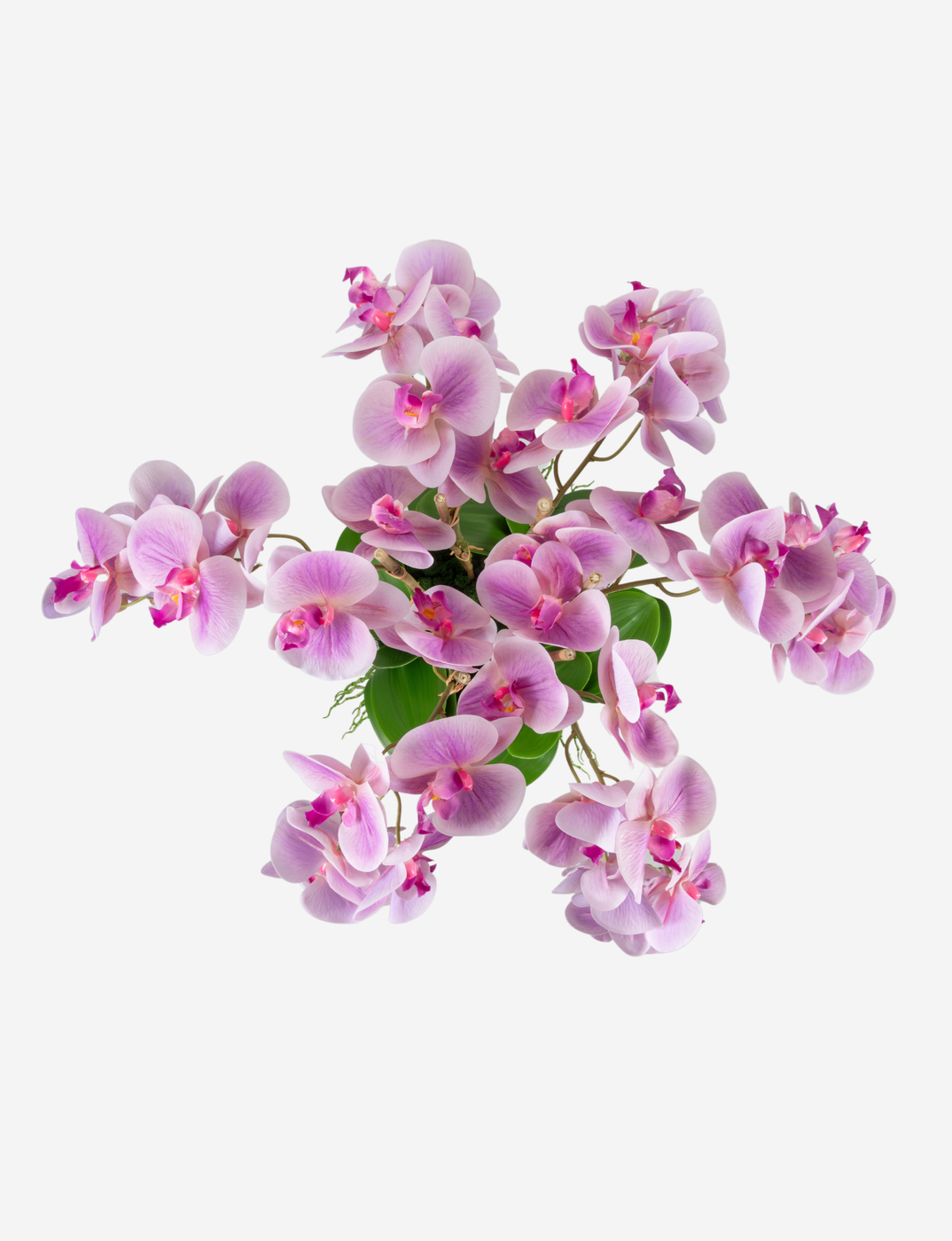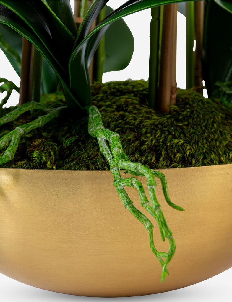 The Abigail Gold RealTouch Orchid Arrangement showcases six exquisite RealTouch Orchids, complemented by twelve elegant Orchid Leaves and Bamboo Sticks, all artfully arranged in a luxurious gold bowl. A true statement piece, it exudes refinement and sophistication, making it the perfect addition to elevate any space with unparalleled beauty. A lasting luxury, timeless and unrivaled.